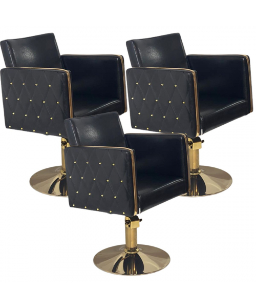 Парикмахерский комплект кресел "Голдиум Блэк З" - Мягкий элемент этого парикмахерского кресла «Голдиум Black» наполнены практичным эластичным поролоном и обтянуты высококачественной искусственной кожей. Вы не потратите на чистку кресла много времени, потому что они не нуждаются в специальной обработке. Строгость линий и массивная оригинальная форма прекрасно сочетается с высокой степенью удобства, которую получит клиент благодаря материалам, использованным при производстве этой модели.