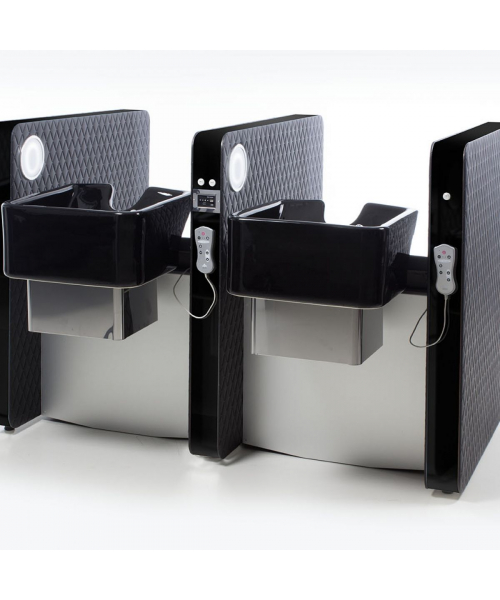 Мойка парикмахерская "VIP LOUNGE 3P" - трехместная с высоким уровнем комфорта и приватной зоной. Мойка оснащена мягкими и комфортными подлокотниками и системой воздушного массажа AIR-SHIATSU. Также мойка с артикулом G-м60002638 оснащена электрической регулировкой сидения, спинной части и опоры для ног. Движения синхронизированные, что позволяет клиенту принять положение "полулежа" обеспечивая максимальный комфорт. Мойка комплектуется глубокой керамической раковиной с регулировкой угла наклона и комплектом смесителя. Обивка - искусственная кожа высшего качества. Отделка боковин - исскуственная кожа коллекции "PRIVACY COLLECTION" или акрил. Окантовка боковин - сталь.