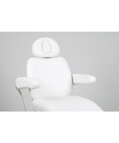 Косметологическое кресло "SD-3875B" оснащено тремя бесшумными электромоторами для регулировки высоты кресла, угла наклона спинки и общего угла наклона сиденья. Модель раскладывается в горизонтальное положение, ножная секция зафиксирована, подголовник с отверстием для лица регулируется по высоте.