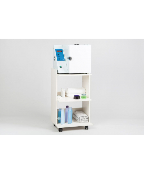 Столик косметолога три полки на колесах. Удобный косметологический столик-тележка с тремя полкапи, ограниченными бортиками с трех сторон. Расстояние между полками 33 см. позволяет ставить высокие флаконы с косметологическими средствами. Влагостойкое ламинированное ДСП порзволяет протирать и обрабатывать столик дез средствами.