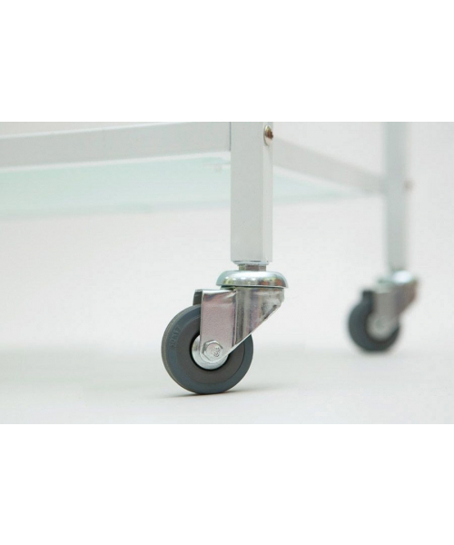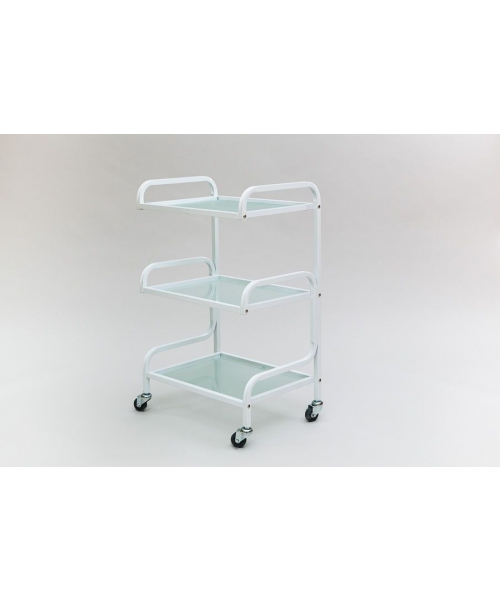 Косметологическая тележка модели "SD-3029" белого цвета с основанием на колесиках станет настоящим помощником в вашем кабинете. Конструкция имеет 3 стеклянных полки, которые предназначены для размещения косметики, оборудования и инструментов. Они способны выдержать нагрузку до 8 кг. Изделие покрыто порошковой краской, которая обеспечивает высокую степень надежности и износостойкости.