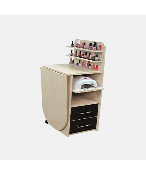 Размеры:1100х500х1040 с полкой для УФ лампы и полочками для лаков