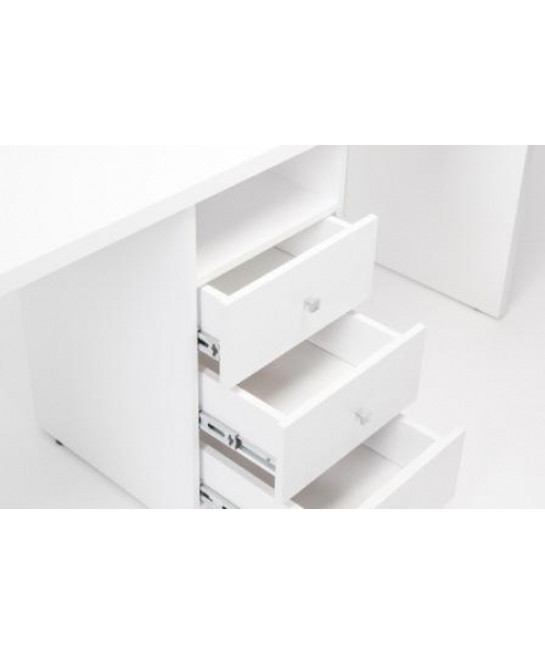 Стол укомплектован тумбой посередине, где мастера могут удобно хранить все необходимые инструменты. Тумба оснащена полкой и тремя выдвижными ящиками.