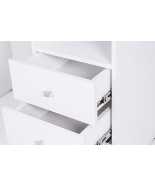 Тумба оснащена полкой и тремя выдвижными ящиками.