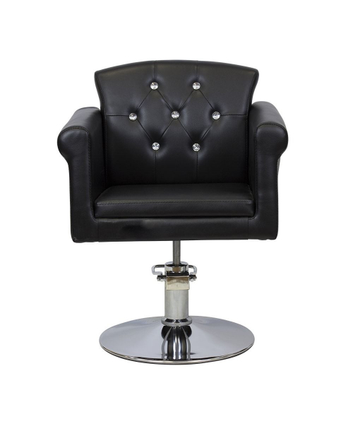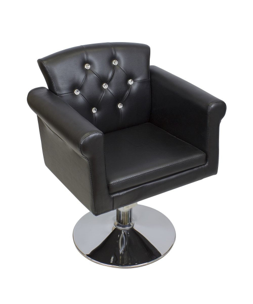 Парикмахерское кресло “МД-309” это профессиональное кресло с удобной широкой сиденье и спинкой с мягкими подлокотниками, выполненной из плотного поролона и обтянутой качественной мягкой экокожей  черного цвета. Спинка кресло выполнена с декоративной прошивкой и красивыми стразами, которые эффектно смотрится на фоне матовой обивки.