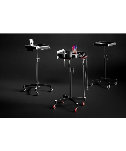 Ассистент колориста NA0057-оснащен надежными прорезиненными колесиками, обеспечивающими бесшумное и быстрое перемещение. Столик выполнен из пластика, ножка и основание – из хромированной стали. Предусмотрены отверстия для инструментов, углубления для чаши и ролик для фольги. В комплекте две кисточки, две чаши и шейкер.