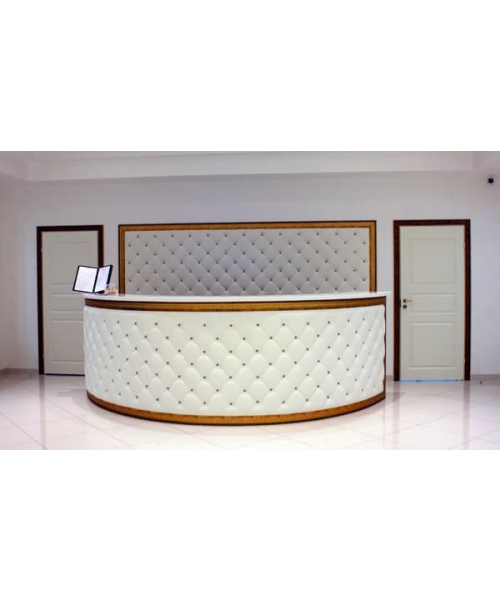 Стойка администратора ресепшн с каретной стяжкой Pieno может быть изготовлена из различных материалов,по индивидуальным размерам с большим выбором цветовой гаммы.