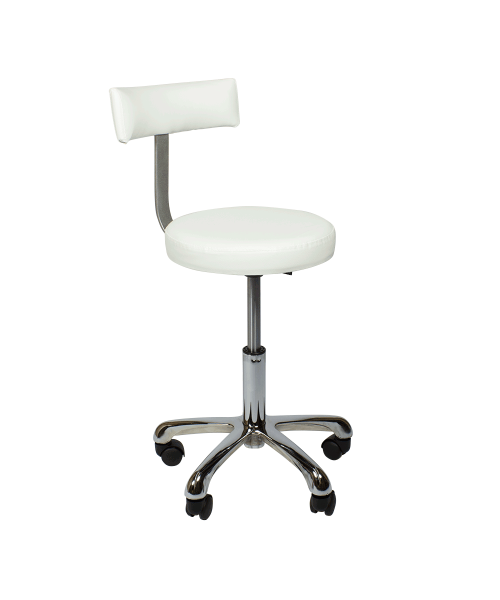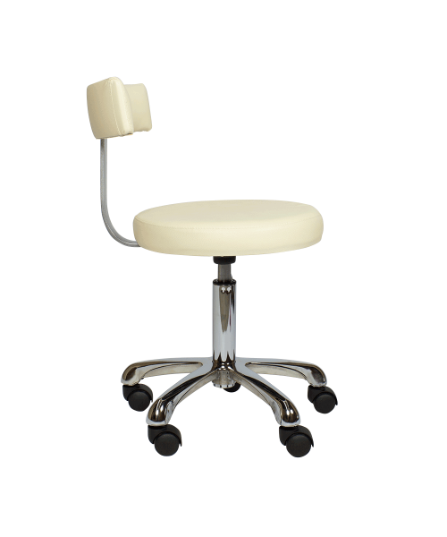 Он отлично подойдет парикмахерам, визажистам, мастерам по маникюру и педикюру, а также другим специалистам. Высота уровня сиденья регулируется с помощью пневматики от 445 до 575 мм. Данная модель комплектуется эргономичным сиденьем круглой формы и высокой анатомической спинкой, которые соединены между собой надежным каркасом из полированного металла. Для производства мягких элементов применяются такие высококачественные материалы: