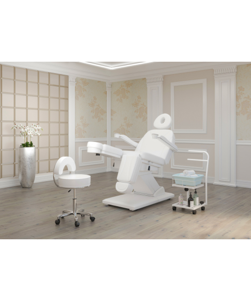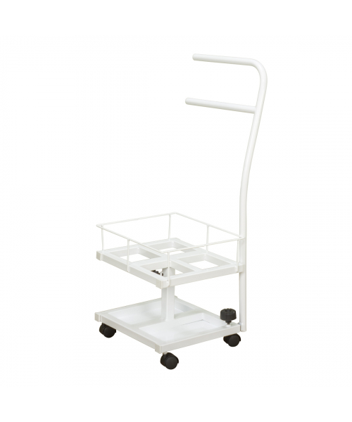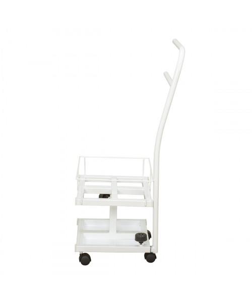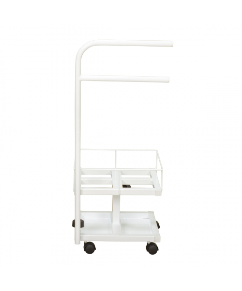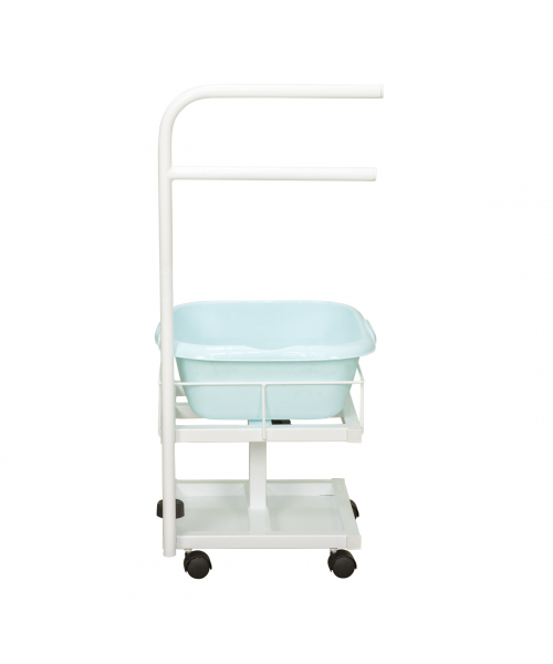 Благодаря двухъярусной конструкции можно установить не только ванную, но также необходимые инструменты и приспособления. Ванночка снимается для чистки и дезинфекции. Удобную ручку можно использовать как для перемещения педикюрного оборудования, так и для развешивания полотенец. Встроенные колеса обеспечивают маневренность и бесшумность передвижения по любому типу напольного покрытия.